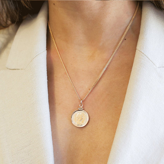 Meia Libra Rainha Isabel II (1982) em Ouro 22kl com Aro Simples em Ouro de 19kl