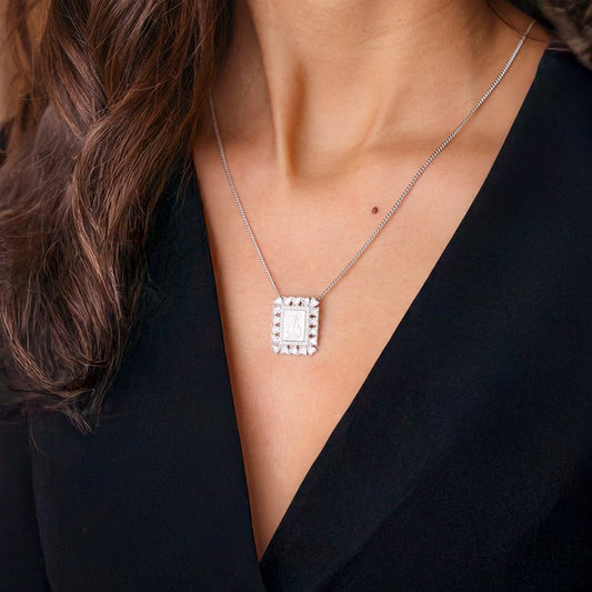 Escapulário em Prata com Imagem Religiosa em Madrepérola e Zircónias