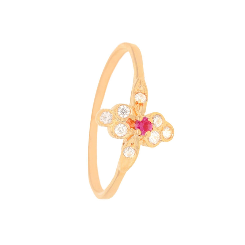 Anel Chuveiro em Ouro 19kl com Rubi e Diamantes (T15)
