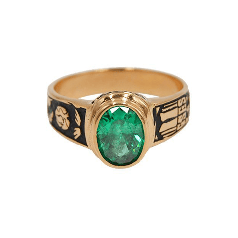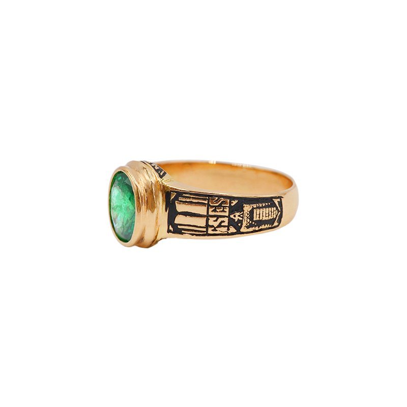 Anel de Curso (ESES) em Ouro Amarelo de 19,2Kl com Quartzo Verde.