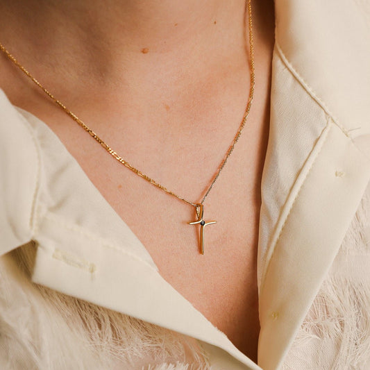 Cruz em Ouro 19kl com Pedra Azul (2.05cm)