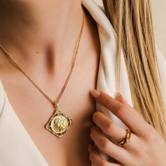 Libra Rainha Victoria (1864) em Ouro de 22kl com Aro Monárquico em Ouro 19kl
