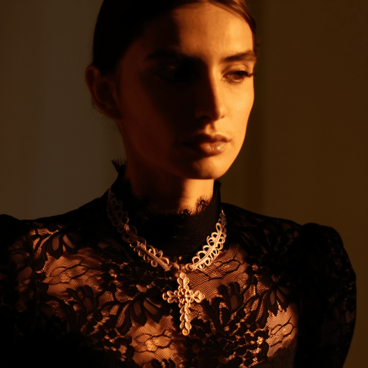Cruz Renda de Luz em Prata Dourada (5cm)