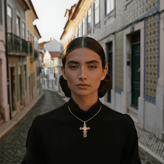 Cruz Segredo das Tranças em Prata Dourada (6cm)