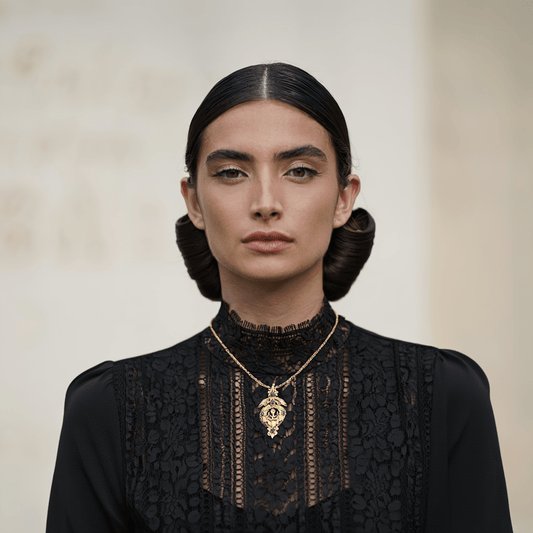 Escapulário em Prata Dourada com Imagem Religiosa em Madrepérola e Zircónias