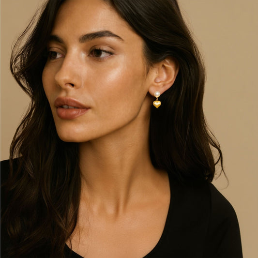 Brincos Coração em Prata Dourada com Pérola