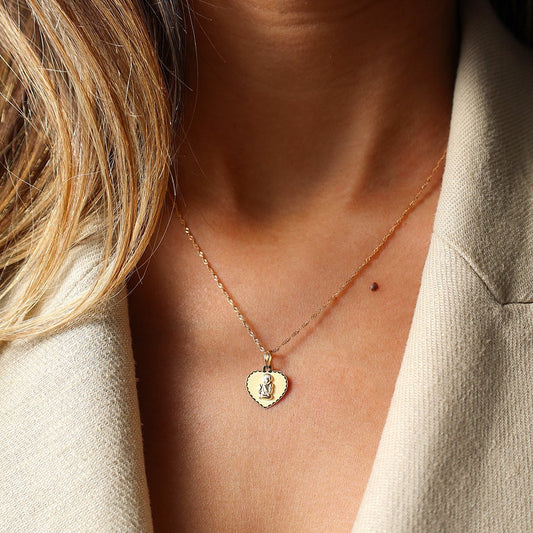 Medalha Coração em Ouro 19kl com Anjo da Guarda