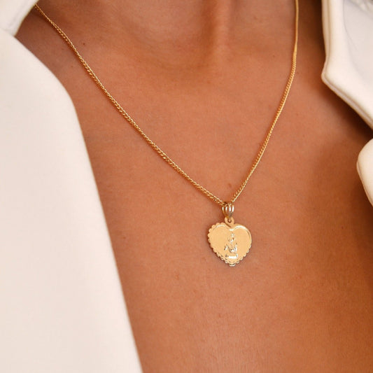 Medalha Coração em Ouro 19kl com Anjo da Guarda (1cm)