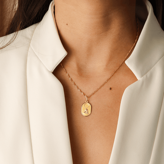 Medalha Retangular em Ouro 19kl com Anjo da Guarda (2.3cm)