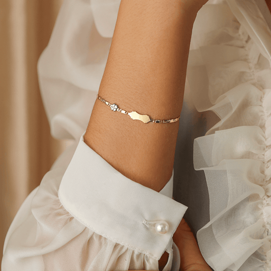 Pulseira em Prata Dourada com Pérolas e Medalha Trevo