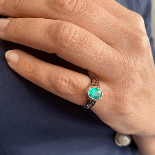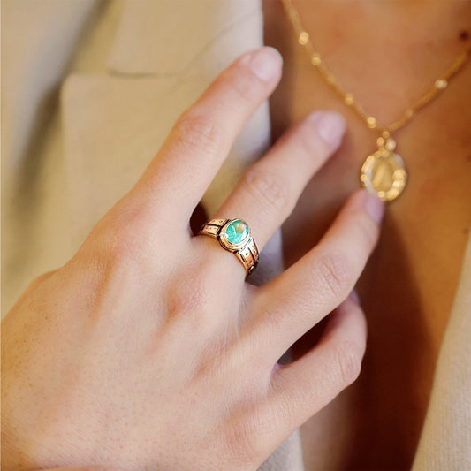 Anel de Curso em Ouro 19kl com Turmalina Verde (T15)
