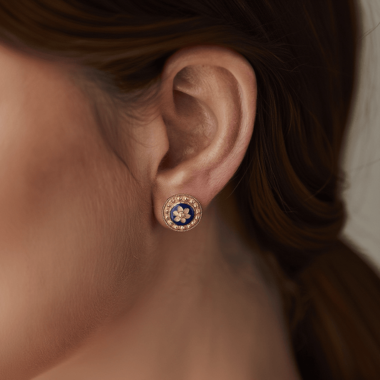 Brincos Caramujo com Esmalte Azul em Ouro 19kl (1.2cm)