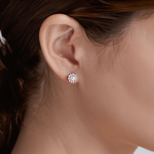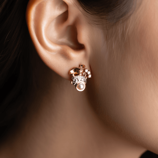 Brincos Vintage em Ouro 19kl com Pérola e Zircónias (1.7cm)