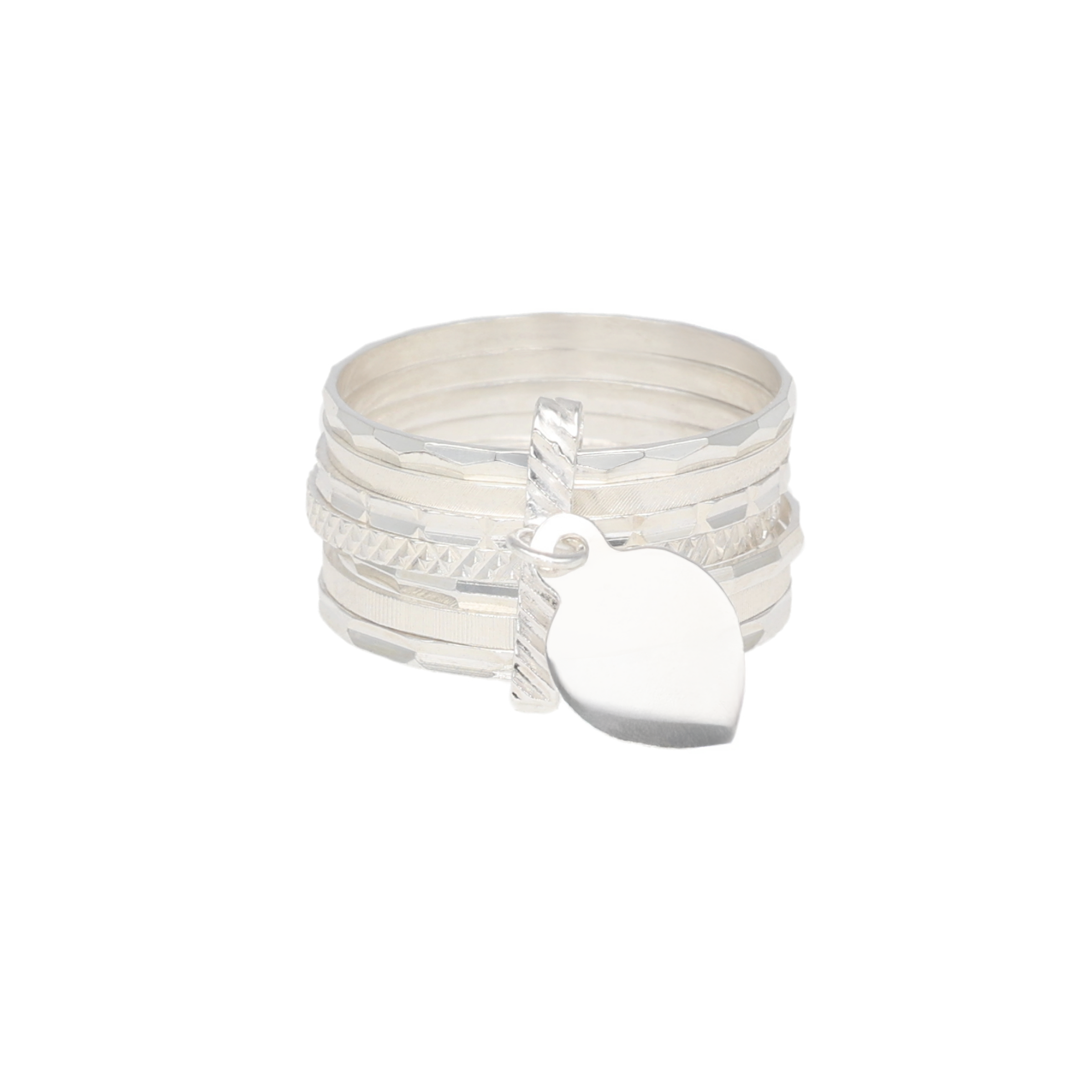 Anel Sete Escravas em Prata 925 com efeito lapidado nos Aros e Coração