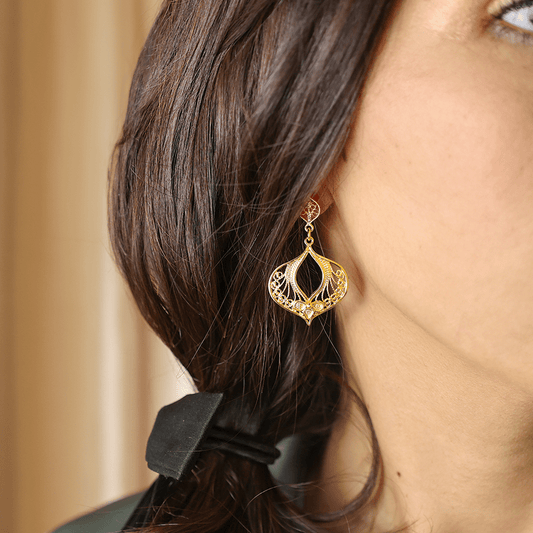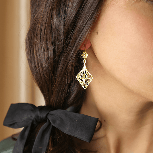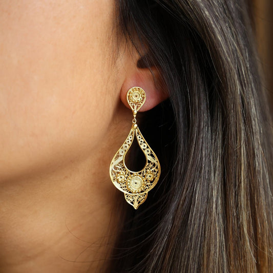Brincos Amália em Prata Dourada com Trevos e Filigrana