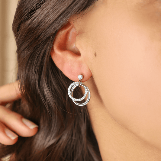 Brincos Círculos Pendentes em Prata com Zircónias