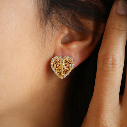 Brincos em Prata com Coração Filigrana e Zircónias