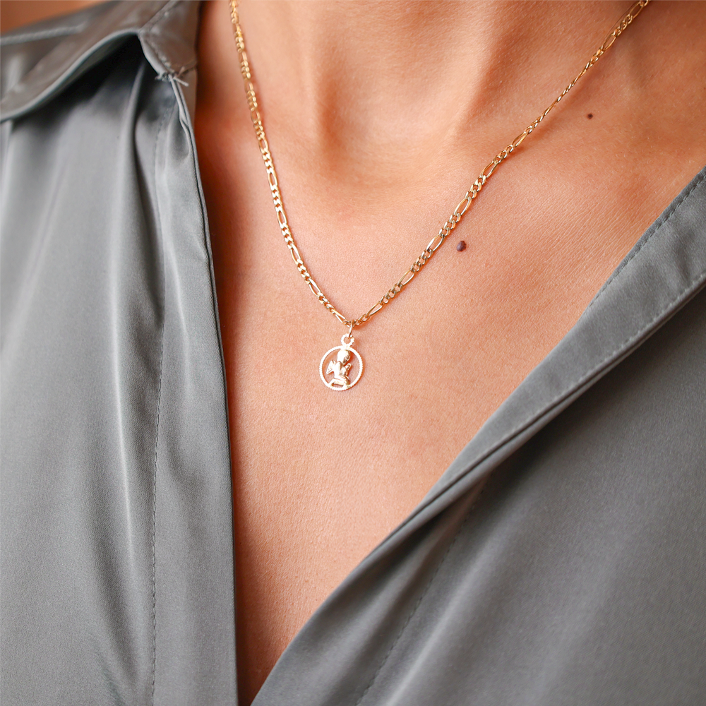 Uma joia que combina a nobreza do ouro com a proteção simbólica do anjo da guarda. Esta medalha é mais do que uma peça de joalharia; é uma expressão de fé e uma lembrança constante da proteção divina.