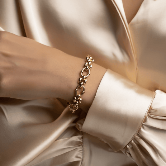 Pulseira com Elos e Esferas em Ouro 19kl (18.5cm)