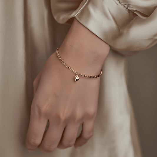 Pulseira Malha 1x1 com Corações em Ouro 19kl (15cm)