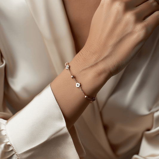 Pulseira Esferas e Flores em Ouro 19kl (17.5cm)