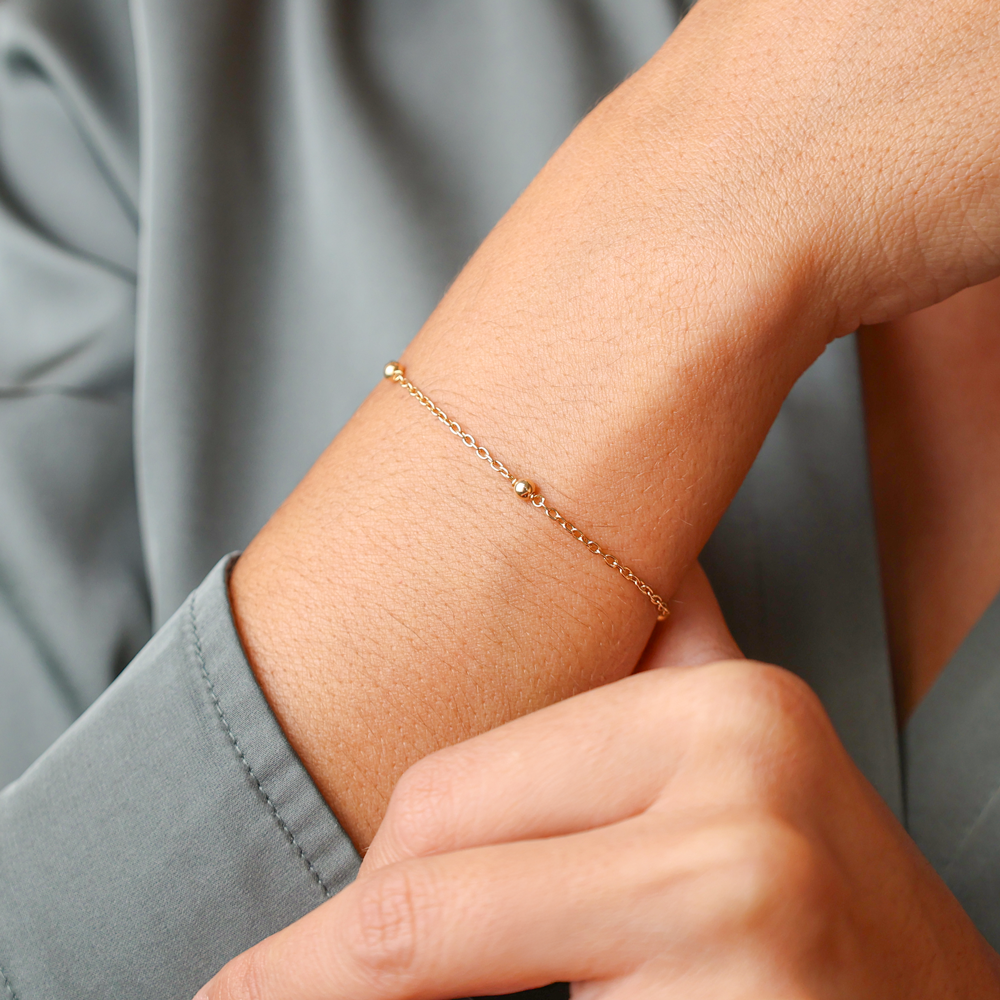 Ideal para oferecer em batizados, aniversários ou como lembrança de nascimento, esta pulseira infantil com esferas em ouro é uma peça intemporal, feita para ser guardada com carinho ao longo dos anos. Uma joia que simboliza afeto, proteção e os laços mais puros — com a leveza e o brilho certos para marcar o início de uma história única.