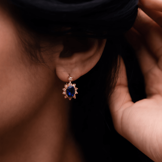 Brincos Dona Flor em Ouro de 19kl com Esmalte Azul