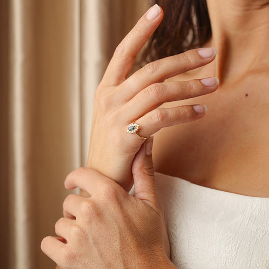 Anel Chuveiro em Ouro 19kl com Topazio e Diamantes (T8)