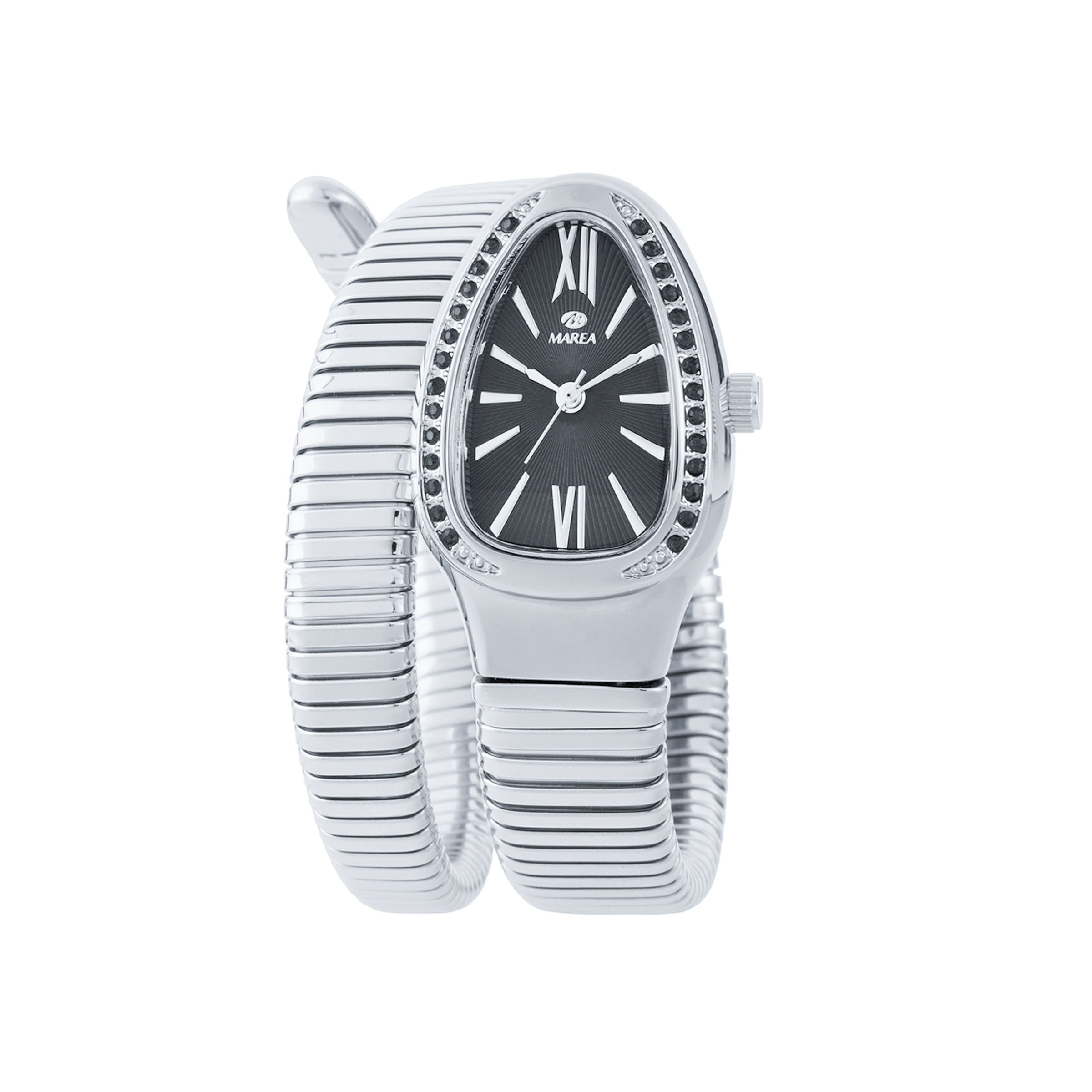O Relógio Sylven é mais do que um relógio — é uma joia de ousadia e elegância. Com um design inspirado na forma de uma serpente, este modelo envolve o pulso com a graça e a força de um símbolo ancestral de poder e renascimento. A bracelete, trabalhada em aço prateado, imita com perfeição o corpo escamado da cobra, criando um efeito visual hipnotizante e sofisticado que transforma o tempo num detalhe de puro luxo.