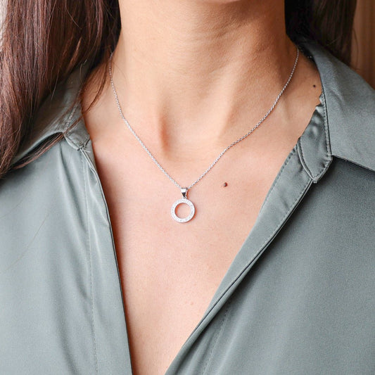 Conjunto Fio e Brincos com Círculo em Prata e Zircónias