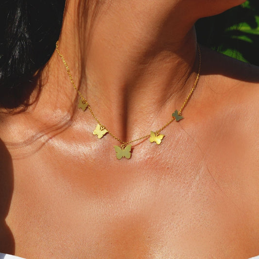 Colar em prata dourada com Borboletas