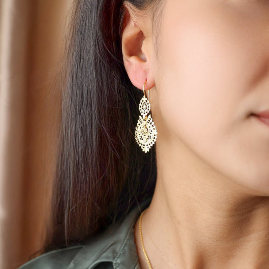 Brincos em Prata Dourada com Circulo cravejado de Zircónias