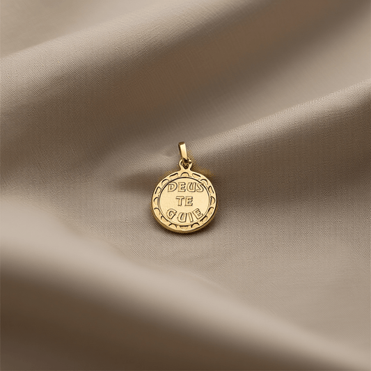 Medalha "Deus te Guie "em Ouro 19kl (1.4cm)