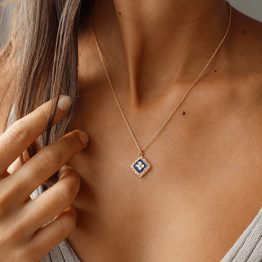 Medalha em Ouro 19kl com Caramujos e Esmalte Azul e Branco