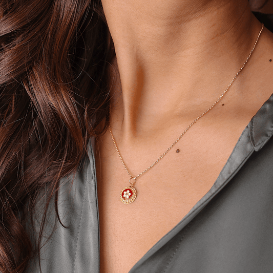 Fio Tradição em Prata dourada com Medalha Caramujos Redonda Vermelha
