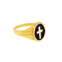 Anel em Prata Dourada e Esmalte Preto, adornado com Cruz