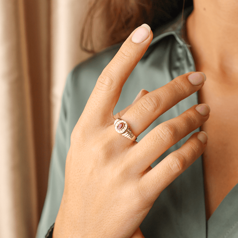 Este anel com rubi e aro trabalhado é perfeito para quem procura uma peça distinta, com personalidade e simbolismo. Ideal para ocasiões especiais, representa paixão, força e requinte em cada detalhe. Uma joia intemporal que combina o valor das pedras preciosas com a beleza do trabalho minucioso em ouro.