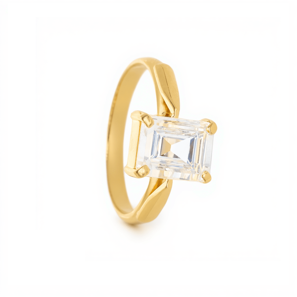 O design intemporal deste anel torna-o uma escolha clássica enquanto anel estilo solitário. A disposição do Zircão proporciona um equilíbrio perfeito, conferindo uma aparência refinada ao anel. Uma adição elegante à sua coleção de joias, este anel em ouro é uma escolha sublime que irradia beleza e estilo.