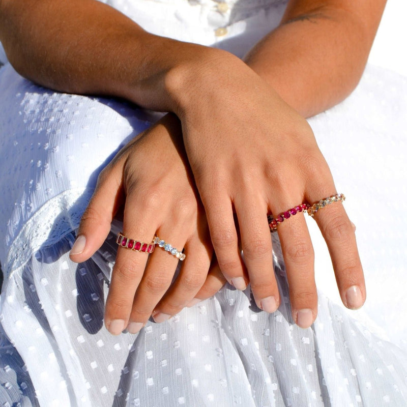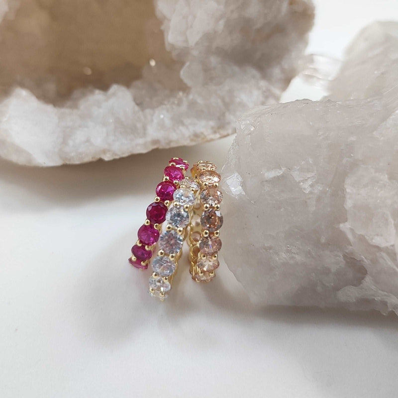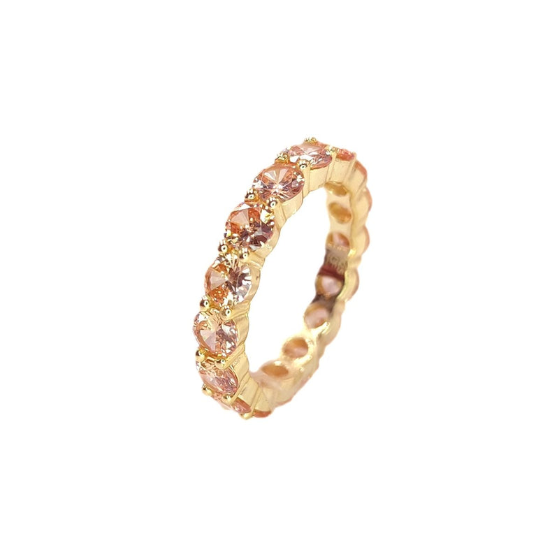 Anel Memória em Prata Dourada cravejado de elegantes Zircões em tom Champagne.