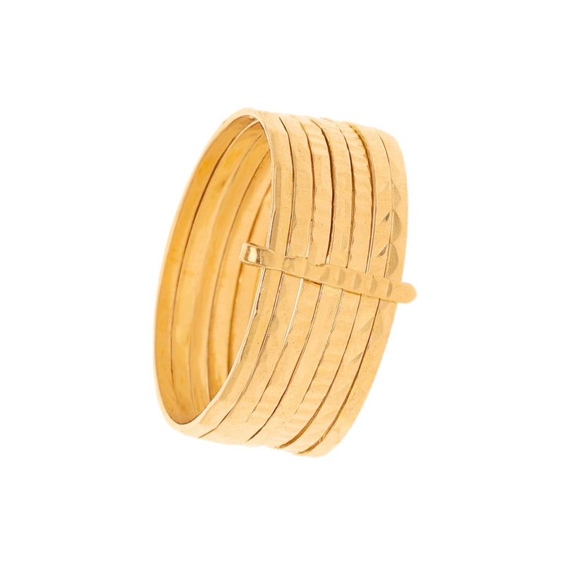 Anel Sete Escravas em Ouro de 19kl com efeito lapidado nos Aros