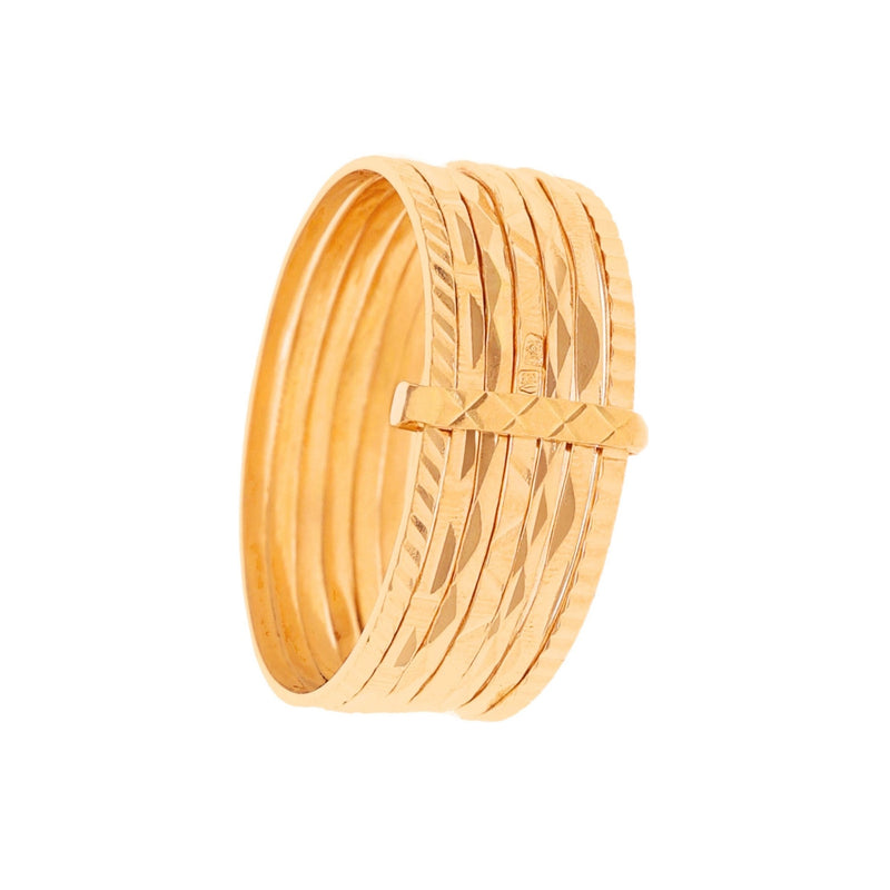 Anel Sete Escravas em Ouro de 19kl com efeito lapidado nos Aros