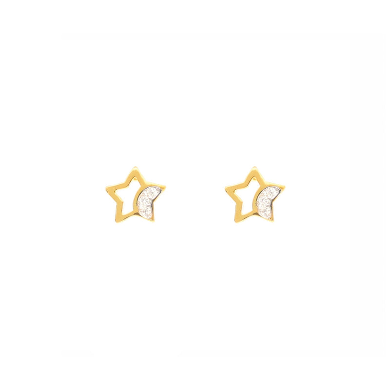 Brincos de Criança em Prata 925 com Estrela em Prata Dourada e Lua de zircónias