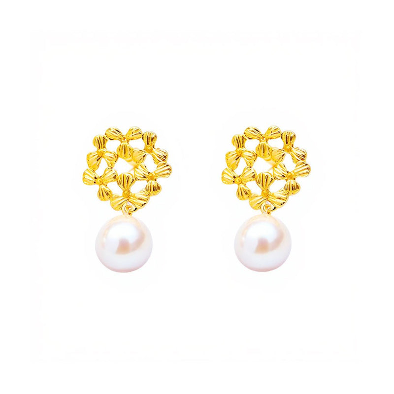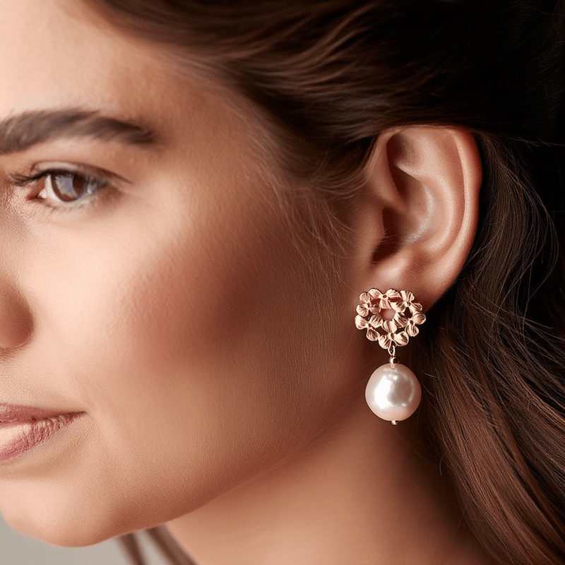 Os Brincos Hortênsia D’Alma são uma homenagem à delicadeza natural e à beleza das flores que inspiram serenidade. Em prata dourada, apresentam um conjunto de pequenas flores que assentam com graciosidade na orelha, formando uma composição harmoniosa e luminosa. A partir desse arranjo floral desce uma pérola pendente, símbolo de pureza e elegância intemporal, que acrescenta movimento e um brilho suave a cada gesto.