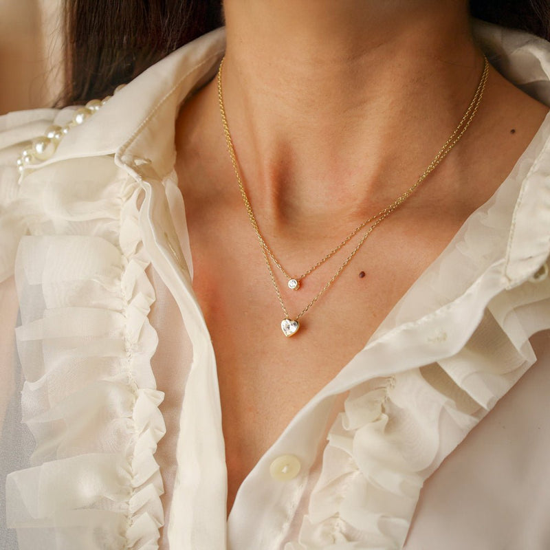 Fio Duplo em Prata Dourada 925 com Zircão e Coração
