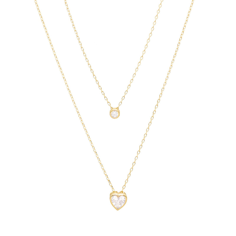 Fio Duplo em Prata Dourada com Zircão e Coração