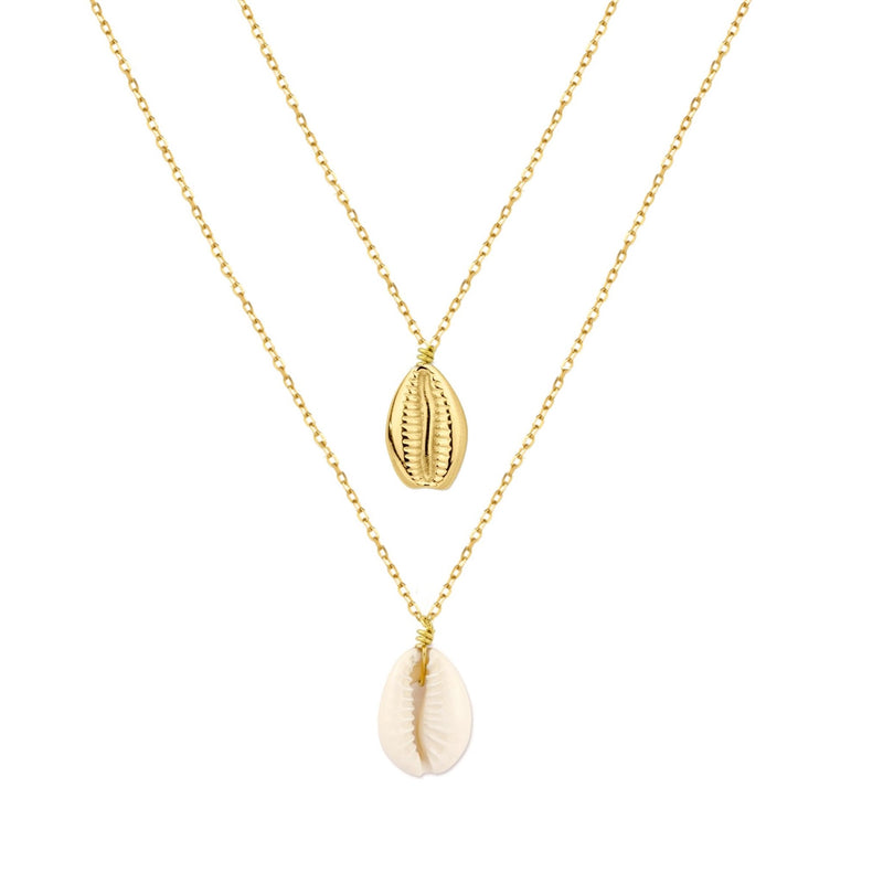 Este fio apresenta um design único e moderno, onde dois delicados fios de prata dourada são adornados com elegantes búzios. A prata dourada oferece um brilho quente e duradouro, enquanto os búzios adicionam um toque exótico e natural à peça.