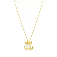 Fio com Escaravelho Branco em prata Dourada 925
