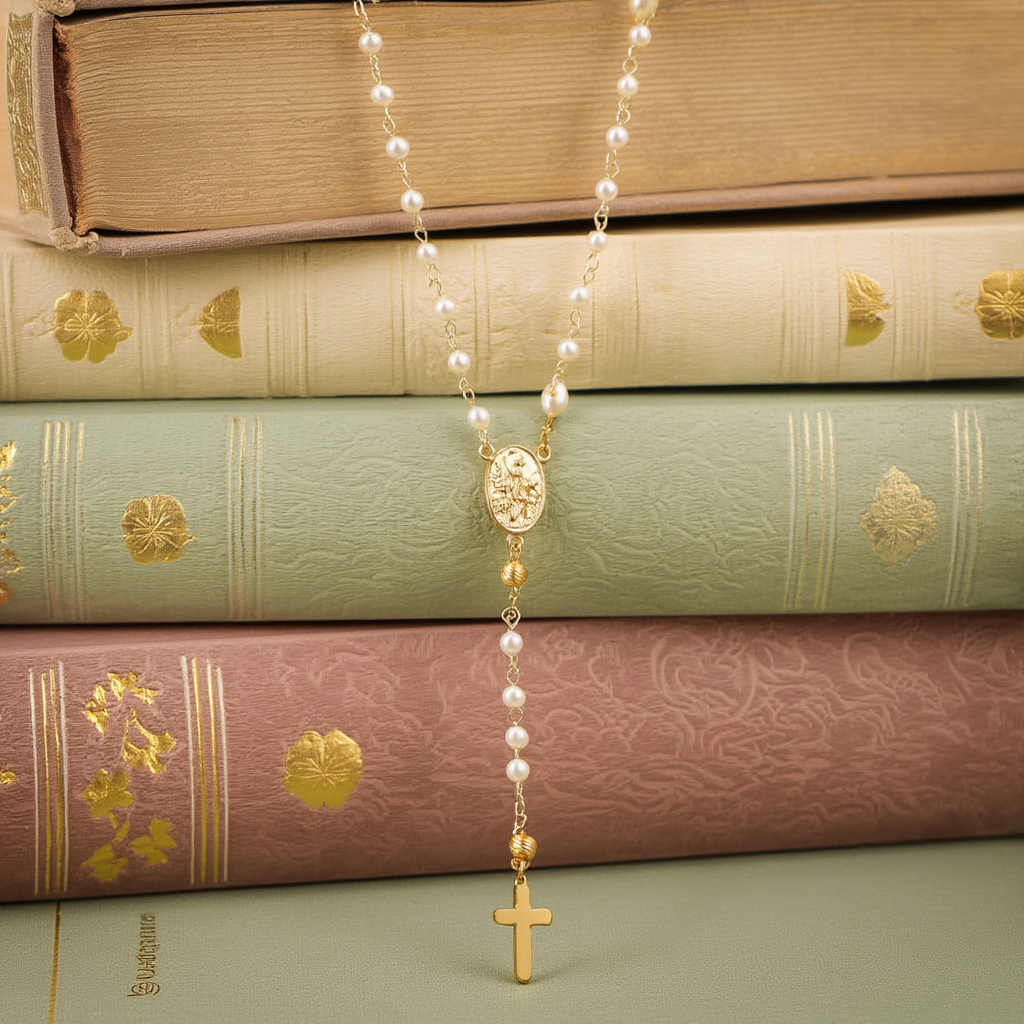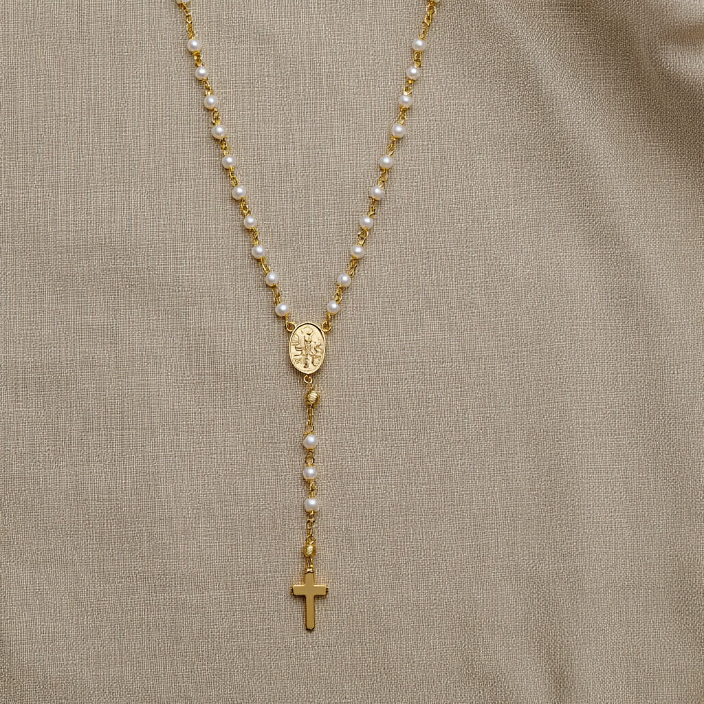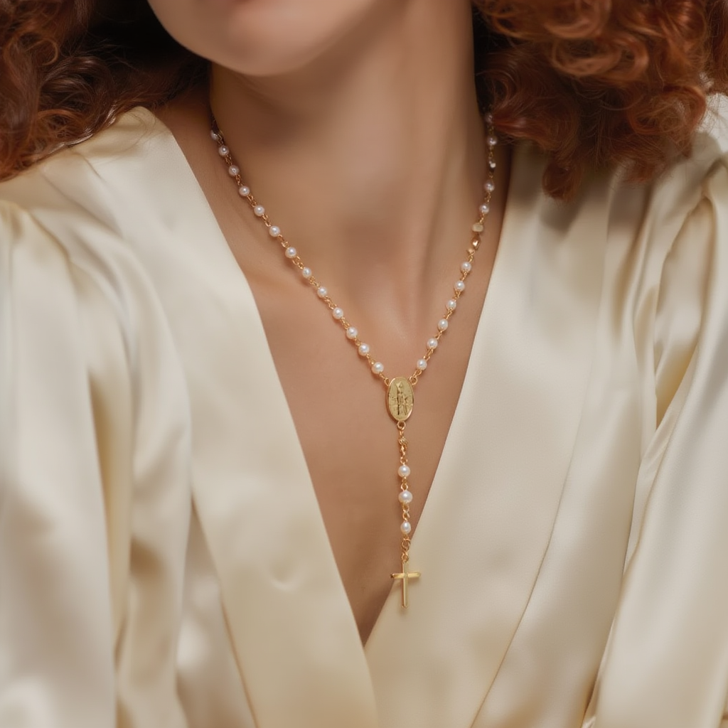 O design delicado deste terço de pescoço permite que seja usado tanto como um acessório de moda minimalista no dia a dia, quanto como uma peça central em ocasiões solenes. A suavidade das pérolas em contacto com a pele proporciona uma sensação de conforto e paz, tornando-o no presente ideal para batizados, comunhões ou aniversários. Se procura uma joia em prata de alta qualidade que combine o simbolismo cristão com a estética de luxo, este fio terço é a escolha perfeita para acompanhar a sua jornada espiritual com distinção e beleza intemporal.