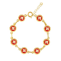 Pulseira Tradição em Prata Dourada e Esmalte vermelho