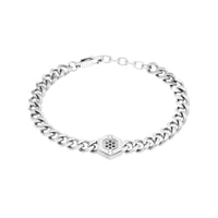 Fabricada em Aço 316L Cirúrhico, esta pulseira garante resistência, durabilidade e um acabamento impecável. O seu grande destaque é o hexágono central, cravejado com zircões negros, um detalhe que adiciona um toque de mistério e sofisticação, elevando a presença do acessório.